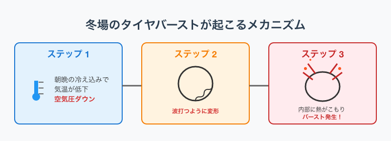 「タイヤのバーストは夏に起こるもの」と思っていませんか。実は、冬もタイヤバーストが発生しやすい季節なのです。