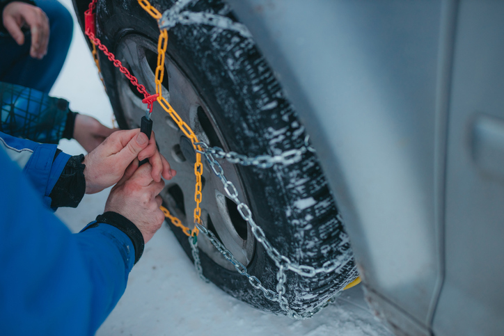 タイヤサイズに適合したチェーンを用意し、取扱説明書も車内に保管しておきましょう。