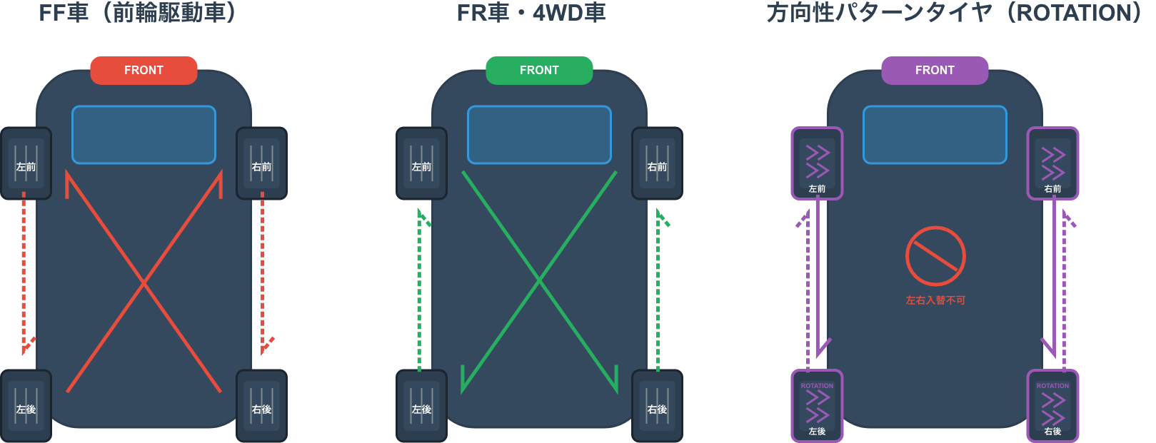 FR車(後輪駆動車)・4WD車のローテーション