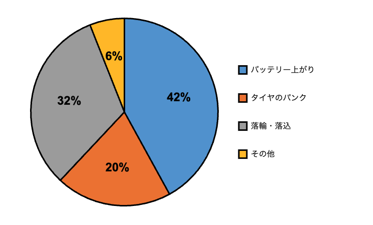 さらに、高速道路では、タイヤトラブルが出動理由の第1位(42.27%)となっており、一般道路の約2倍の発生率となっています。